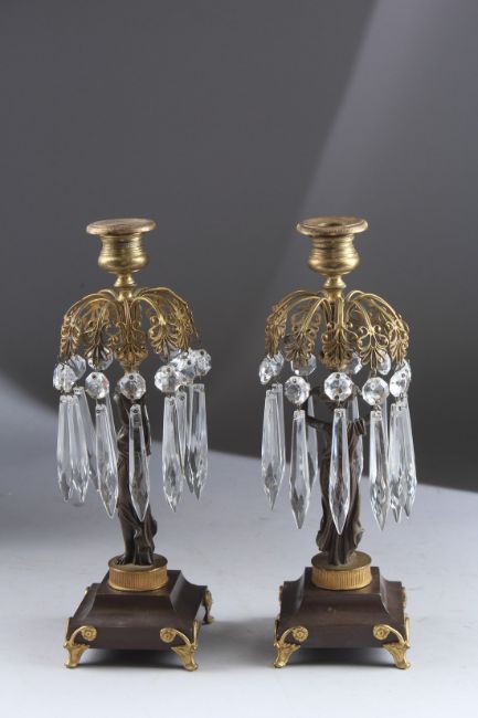 A VERY GOOD PAIR OF REGENCY GILT BRONZE LUSTRES with glass drops.