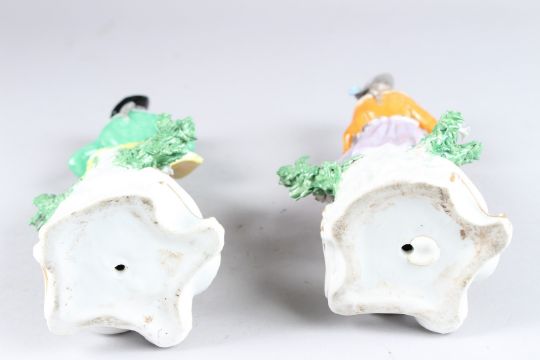A PAIR OF SAMSON CHELSEA DERBY FIGURES OF A GALLANT AND A LADY, the man with a gun the lady with a pheasant.
