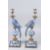 A LARGE PAIR OF BLUE AND WHITE PORCELAIN CANDLESTICKS, modelled as parrots seated on urns on square shaped bases, 19in high.