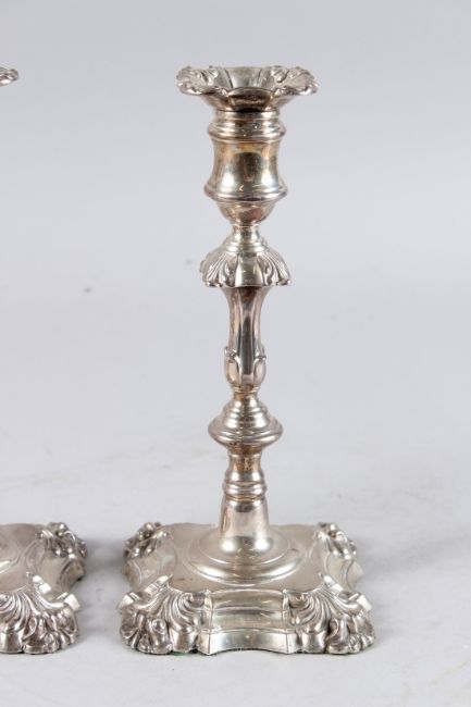 A GOOD PAIR OF VICTORIAN SHEFFIELD SILVER CANDLESTICKS.