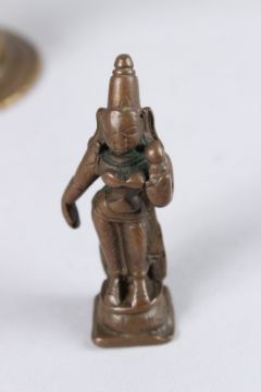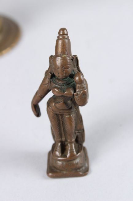 A COLLECTION OF FOUR 18TH - 196TH CENTURY INDIAN BRONZE FIGURES OF HINDU DEITIES.