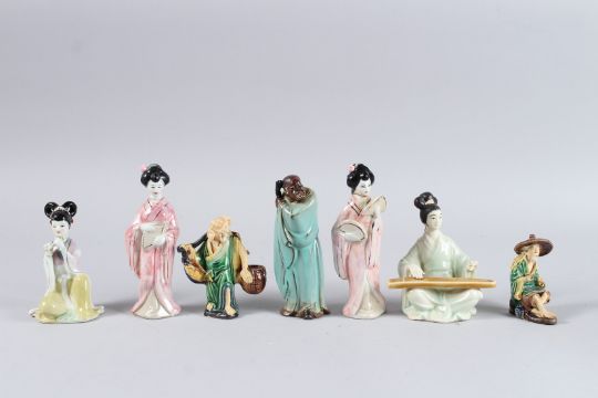 A COLLECTION OF SEVEN CHINESE POTTERY FIGURES.