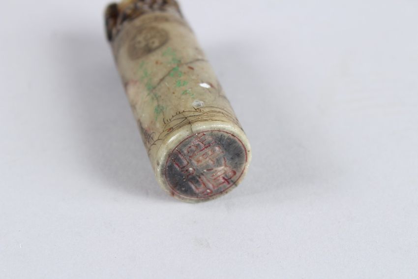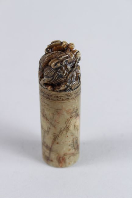 A CHINESE SOAPSTONE SEAL with carved dragon seal.