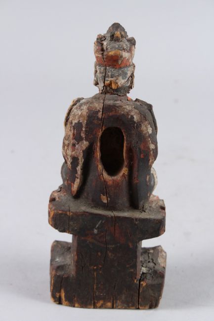 A SMALL MING DYNASTY CARVED WOOD SEATED BUDDHA8ins high.