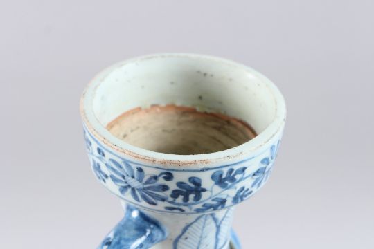 A CHINESE BLUE AND WHITE VASE, with elephant head and ring handles, 15½in high.