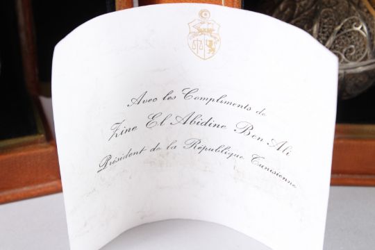 TWO RARE SOLID FILIGREE SILVER FRUITS in original leather boxes, gifted by The President of Tunisia, Zine Alabdeen bin Ali.