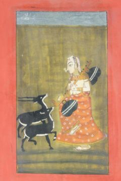 A 19TH CENTURY INDIAN PAINTING of a sitar player.