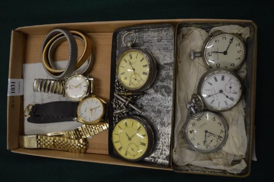 Two gentlemans silver cased pocket watches, various other pocket watches etc.