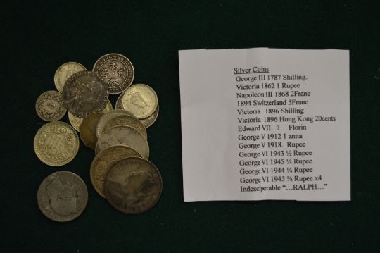 A group of silver coins.