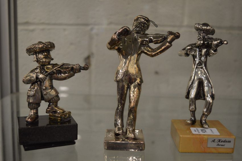 Frank Meisler, a model of a musician together with two silver overlaid models of musicians.