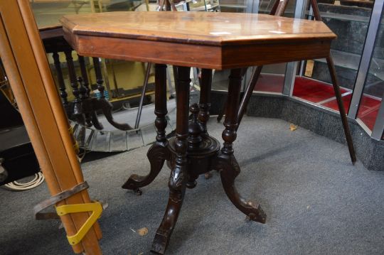 An Edwardian inlaid walnut octagonal shaped occasional table.