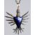 A LARGE BIRD PENDANT SET WITH RUBY EYE AND DIAMONDS, with a navy blue enamel inlay, in white and yellow metal, with chain, boxed.