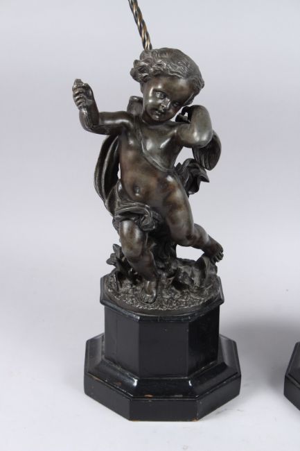 A PAIR OF CHERUB LAMPS on octagonal bases.