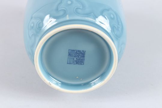 A CHINESE GREY POTTERY VASE decorated with flowers.