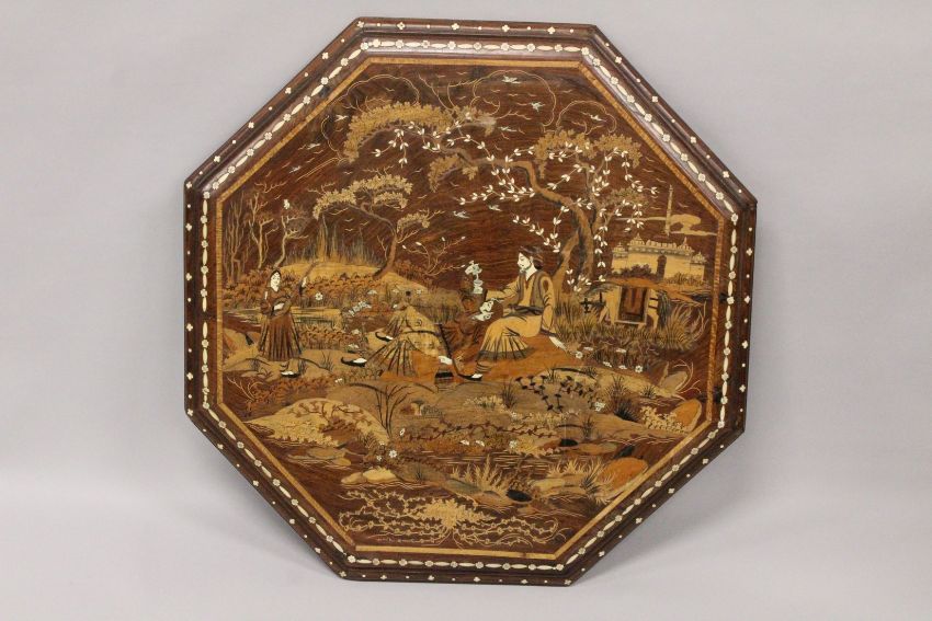 A GOOD INDIAN OCTAGONAL INLAID TABLE TOP.