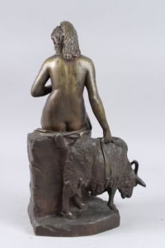 A BRONZE GROUP, NUDE AND GOAT.