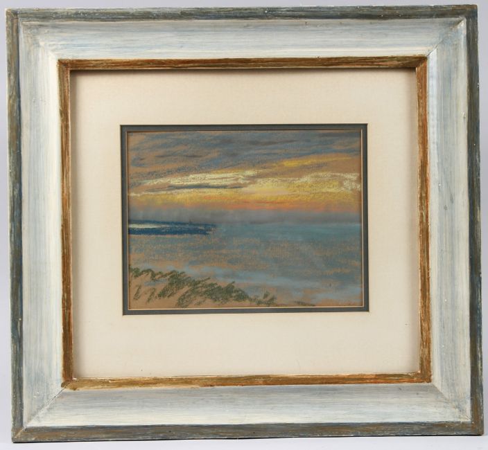 FRANK SHORT (1857-1945) Seascape at sunset, pastel, signed, 18.5 x 25cm