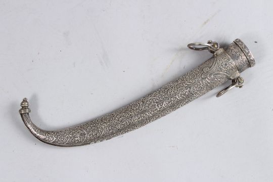 TWO 19TH CNENTURY MOROCCAN SILVER MOUNTED KOMAYA DAGGERS.