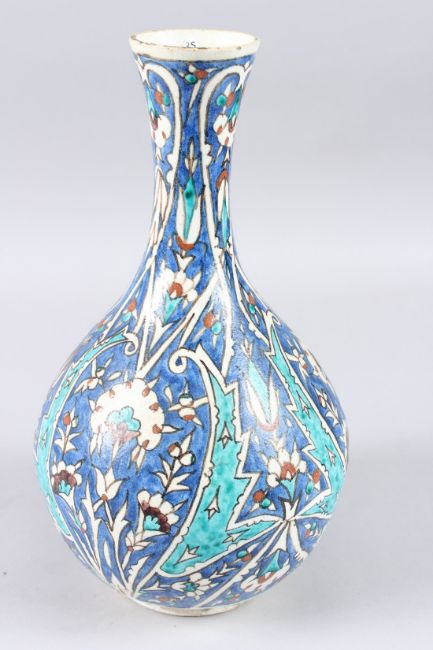 A 19TH CENTURY OTTOMAN TURKISH KUTAHIYA GLAZED POTTERY VASE.