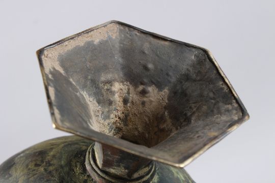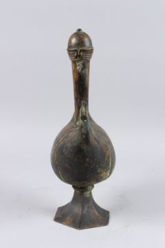 AN UNSUAL INDIAN BOAT SHAPED BRASS EWER.