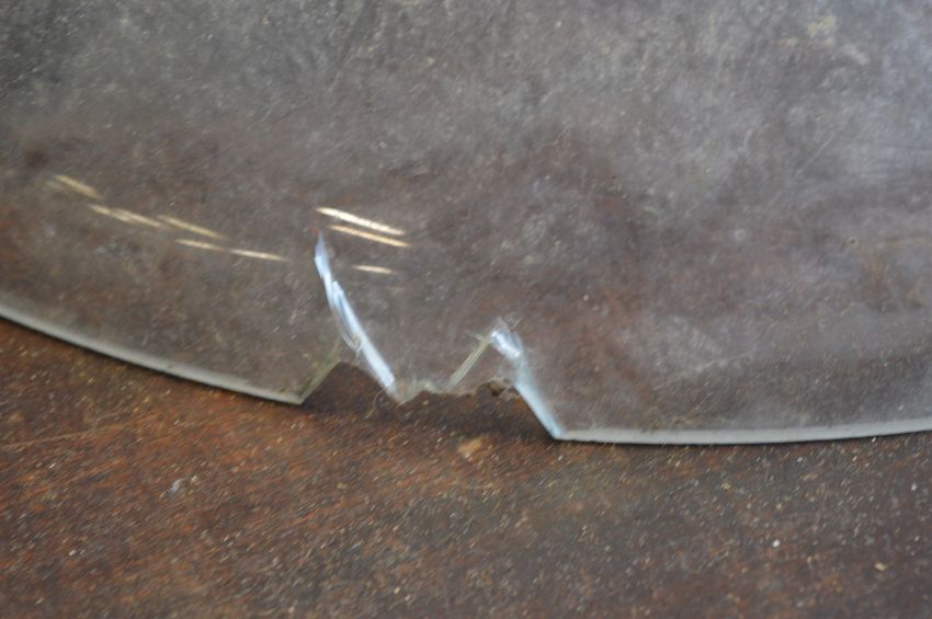A pair of large glass bell shaped cloches, one with rim chips.