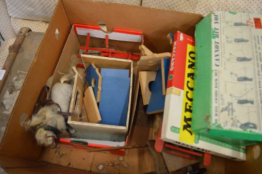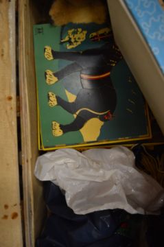 An old trunk and a box containing numerous toys, dolls, games etc.