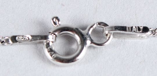 A SILVER BAROQUE PEARL PENDANT with a diamond set butterfly and diamond set bale, on a silver chain, boxed.
