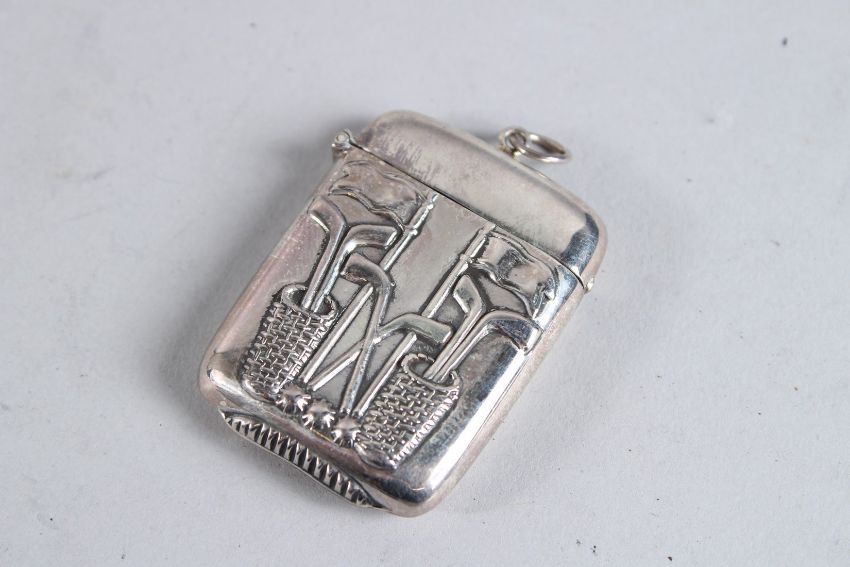 A SILVER CROQUET VESTA CASE.