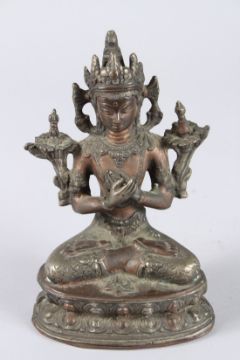 A CHINESE BRONZE SEATED BUDDHA.
