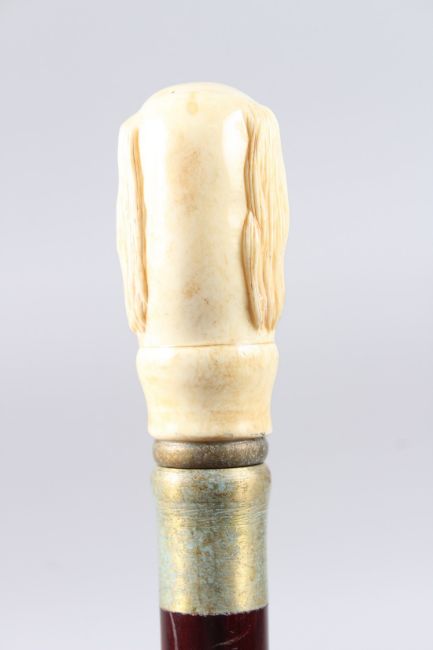 A WALKING STICK with a carved bone dog's head.
