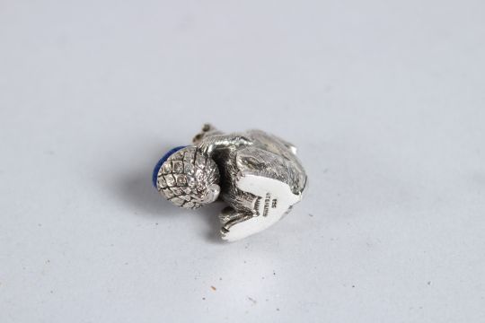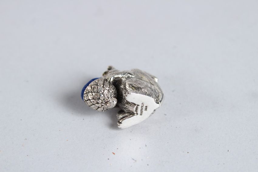 A SILVER SQUIRREL PIN CUSHION.