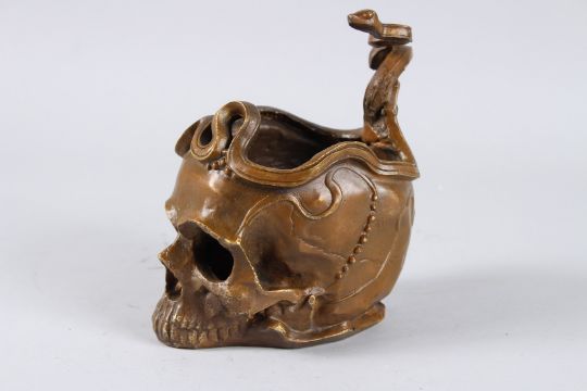 A BRONZE SKULL with a snake.