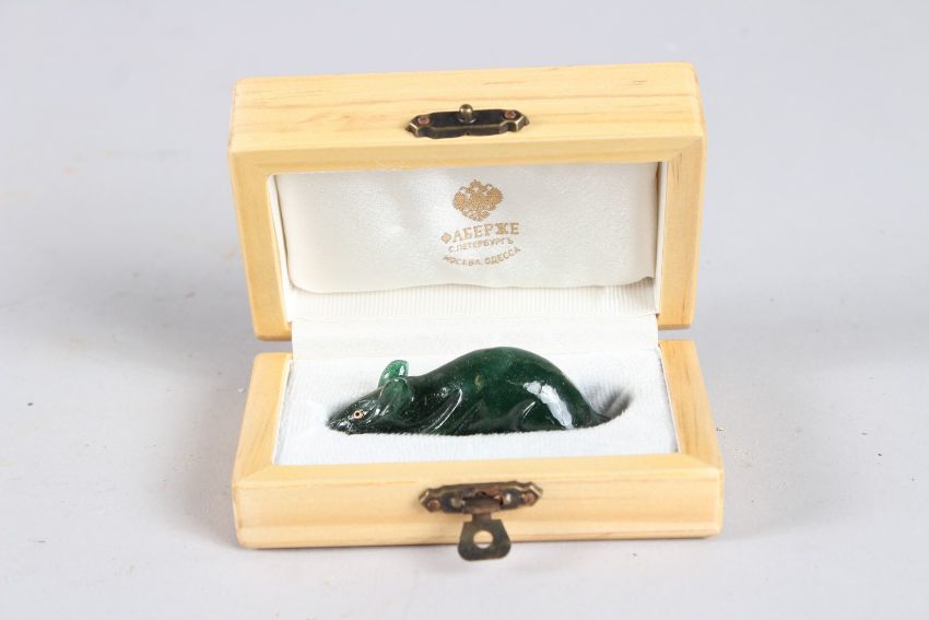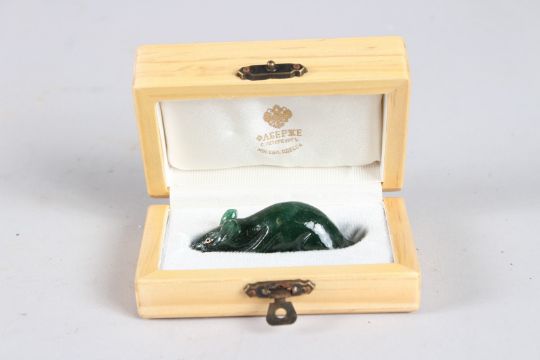 A RUSSIAN JADE RAT with gold eyes.