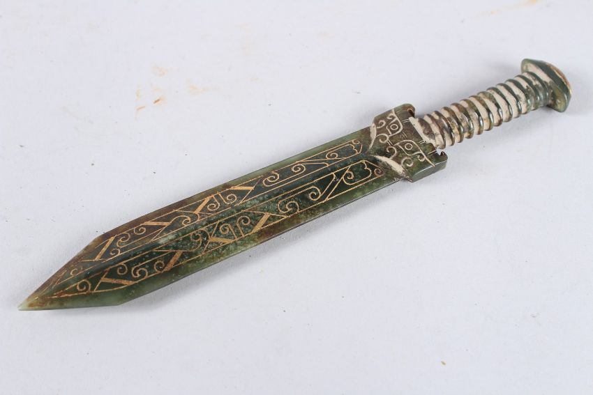 A GOLD INLAID JADE DAGGER.