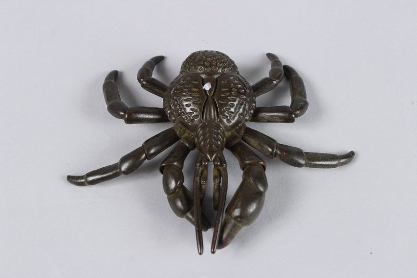 A JAPANESE OKIMONO BRONZE ATLANTIC CRAB with articulated leg.
