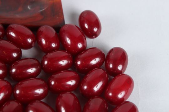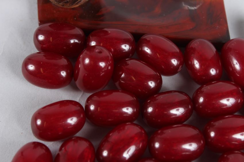 A YZ DUNHILL STYLE BIRD ASHTRAY with Bakelite base and cherry amber beak, with loose red beads.