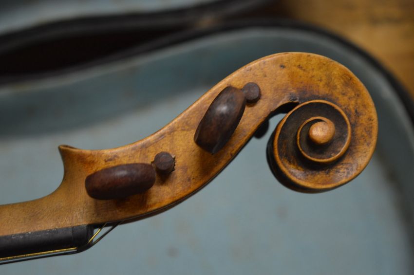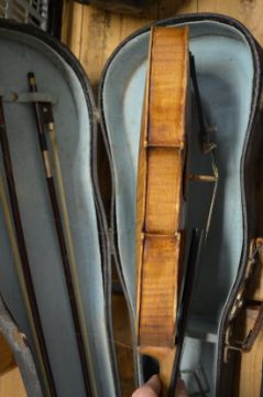 Two cased violins.