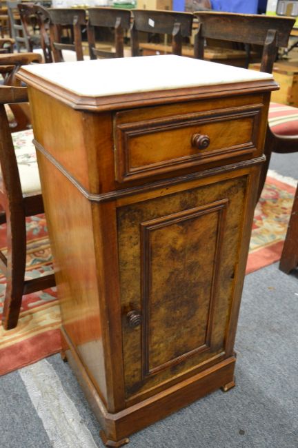 A French walnut and marble topped pot cupboard.