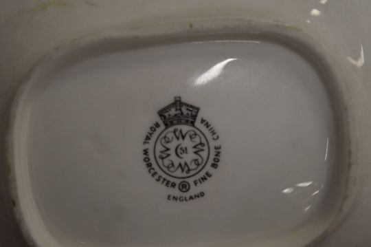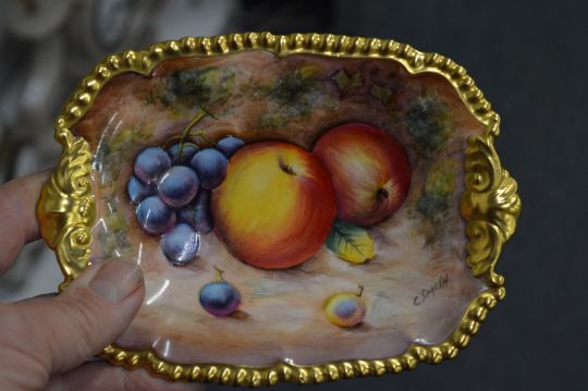 A group of five items of Worcester fruit decorated porcelain to include a pair of dishes, a plate and two small circular dishes (very minor ware otherwise good condition).