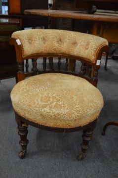 A Victorian small horseshoe shaped and upholstered bedroom chair.