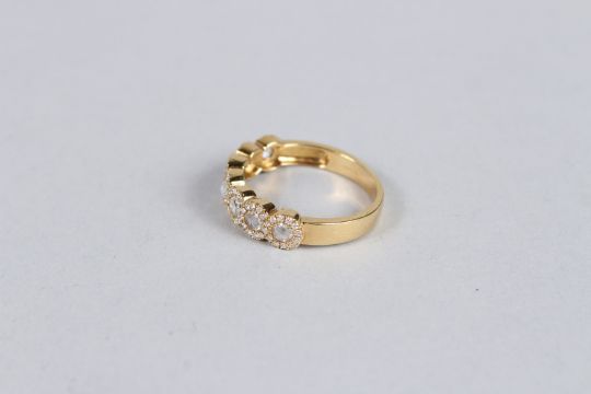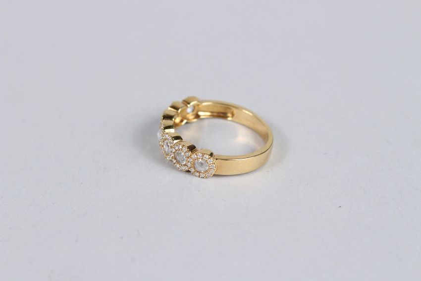 AN 18CT YELLOW GOLD, DIAMOND AND ROSE CUT DIAMOND RING.
