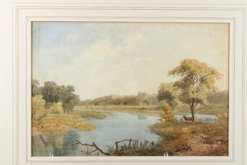 Landscape with river and stately home,