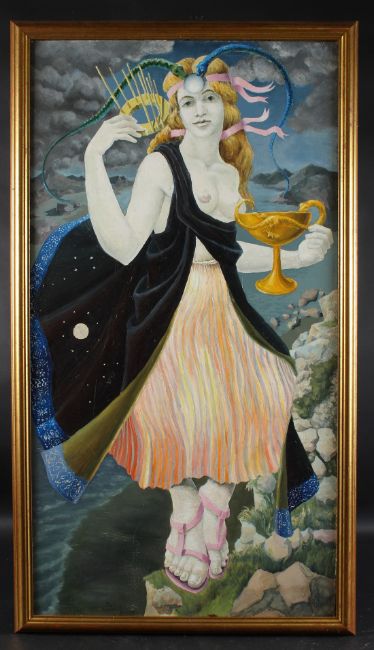 Mythical female figure on cliff edge