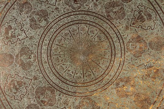 A LARGE PERSIAN CIRCULAR ENGRAVED BRASS DISH