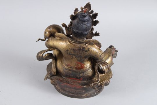 A TIBETAN GILT BRONZE STATUE OF DZAMBALA