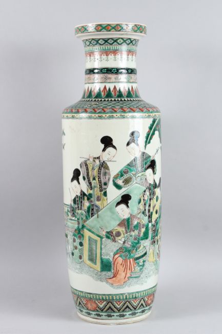 A GOOD 19TH CENTURY FAMILLE ROSE ROULE VASE painted with ladies playing musical insttuments