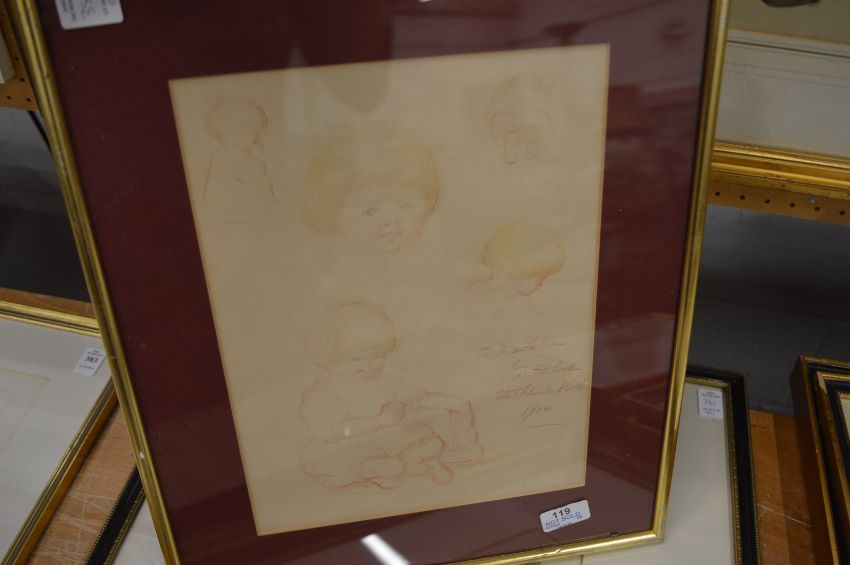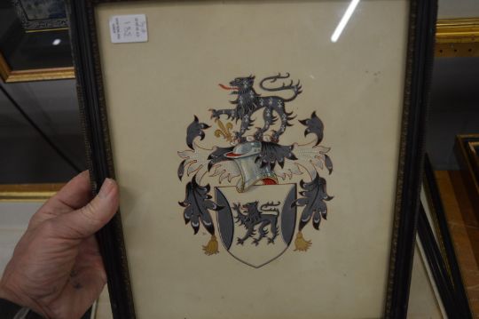Unframed portraits, armorial crest, framed and glazed etc.