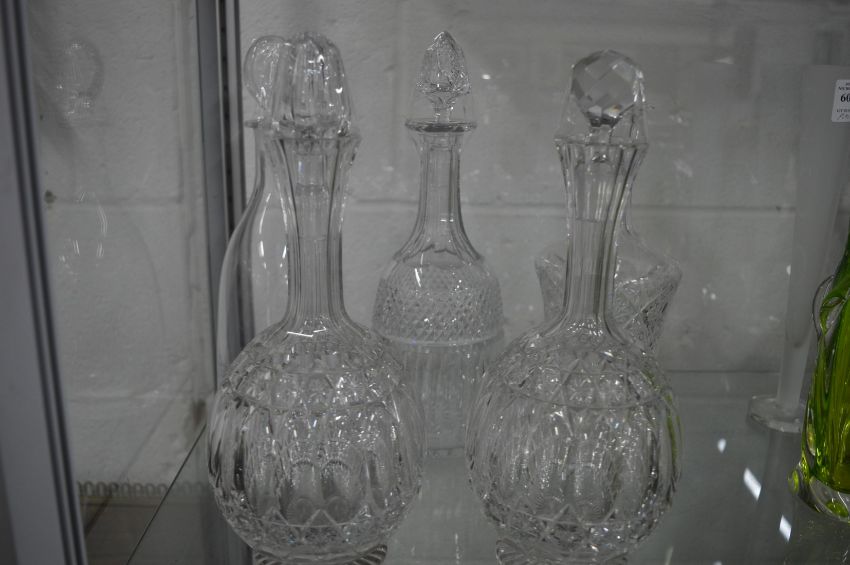 Five various decanters.