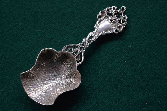 A silver caddy spoon.