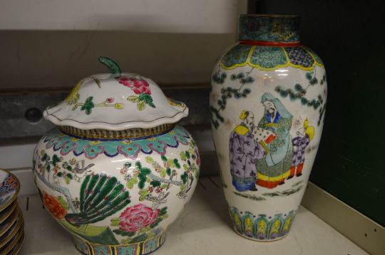 Oriental porcelain to include a famille verte vase and similar jar and cover.